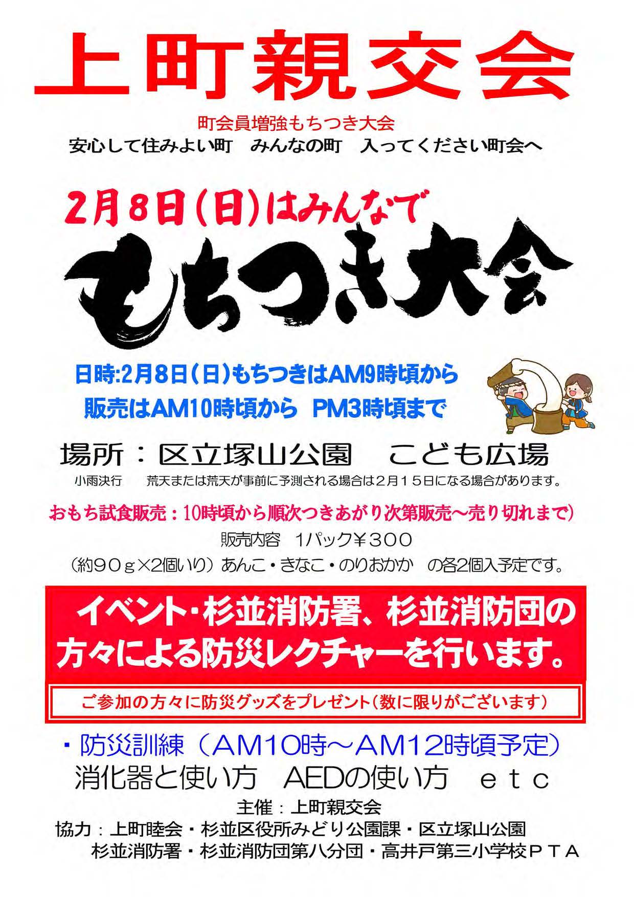 下高井戸八幡神社の例大祭への参加、鎌倉街道の庚申堂祭り、塚山公園の餅つき大会の開催を行っています。
